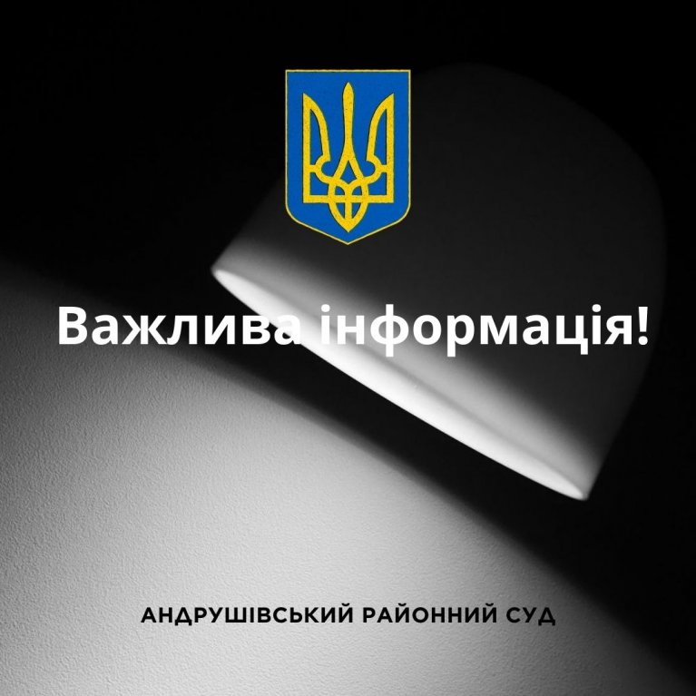 У зв’язку зі складною енергетичною ситуацією в нашій державі, зокрема у Житомирській області, робота Андрушівського районного суду Житомирської області тимчасово здійснюється відповідно до графіку відключення електроенергії.